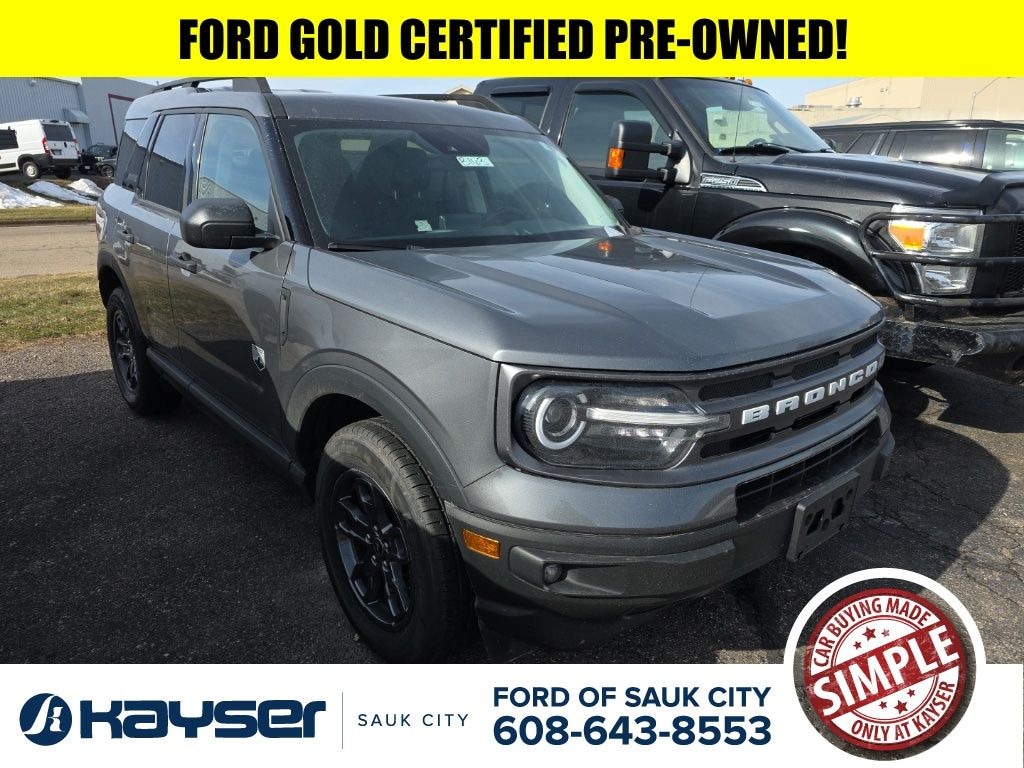 Recent Arrival! FORD GOLD CERTIFIED WARRANTY, ONE OWNER, LOW MILES, CLEAN HISTORY, HEATED SEATS, AND REMOTE START, APPLE CARPLAY/ANDROID AUTO, NAVIGATION, WITH BLIND SPOT INFORMATION SYSTEM, FORD CO-PILOT 360, REAR VIEW CAMERA, PRE-COLLISION ASSIST, WIRELESS CHARGING, LANE KEEPING SYSTEM, SECURICODE DOOR KEYPAD, AUTO-DIM REAR VIEW MIRROR, 4WD, REMOTE KEYLESS ENTRY, REVERSE SENSING SYSTEM, UNIVERSAL GARAGE DOOR OPENER, 4-Wheel Disc Brakes, 6 Speakers, ABS brakes, Air Conditioning, AM/FM radio: SiriusXM, Auto High-beam Headlights, Automatic temperature control, Brake assist, Cargo Management System, Compass, Convenience Package, Delay-off headlights, Dual front impact airbags, Dual front side impact airbags, Electronic Stability Control, Emergency communication system: SYNC 3 911 Assist, Equipment Group 200A, Four wheel independent suspension, Front anti-roll bar, Front Driver & Passenger Seatback Zipper Pockets, Fully automatic headlights, Heated door mirrors, Heated Front Bucket Seats, Illuminated entry, Intelligent Access (Lock/Unlock), Knee airbag, Leather-Wrapped Steering Wheel, LED Fog Lamps, Low tire pressure warning, Occupant sensing airbag, Outside temperature display, Overhead airbag, Overhead console, Panic alarm, Power steering, Power windows, Rear anti-roll bar, Rear Parking Sensors, Rear window defroster, Rear window wiper, Remote keyless entry, Security system, Speed control, Speed-sensing steering, Speed-Sensitive Wipers, Steering wheel mounted audio controls, SYNC 3 Communications & Entertainment System, SYNC 3/Apple CarPlay/Android Auto, Tachometer, Telescoping steering wheel, Tilt steering wheel, Traction control, Trip computer, Unique Cloth Front Bucket Seats, Universal Garage Door Opener (UGDO), Variably intermittent wipers, Wheels: 17" Carbonized Gray-Painted Aluminum, Wireless Charging Pad. 2023 Ford Bronco Sport Big Bend 4WD Gray Metallic
