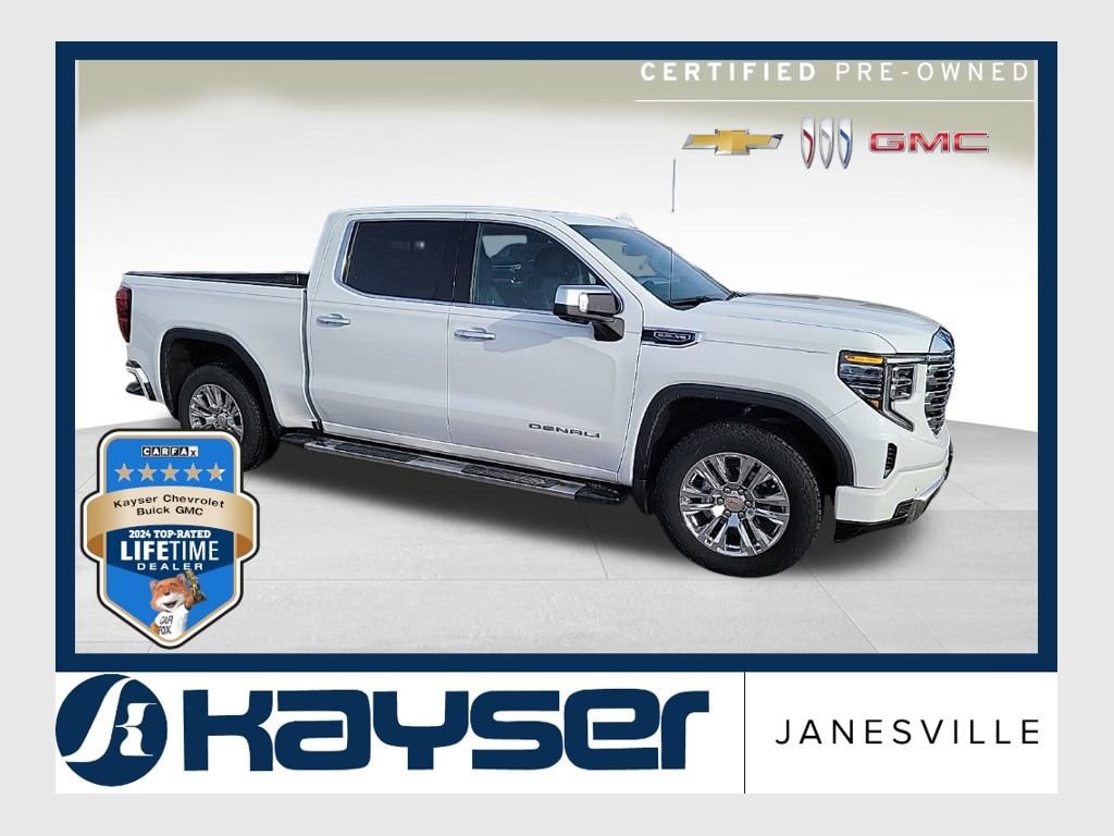 Experience the pinnacle of power, luxury, and convenience with this 2022 GMC Sierra 1500 Denali. This exceptional vehicle is a true testament to GMC's commitment to engineering excellence, offering a commanding presence on the road and a wealth of premium features that will elevate your driving experience. Power Sunroof 3 Years of OnStar & Connected Services Plan Trailering PackageThis Sierra 1500 Denali is equipped with an EcoTec3 5.3L V8 engine and a 10-speed automatic transmission, delivering a seamless blend of power and efficiency. With 4-wheel drive, you'll conquer any terrain with confidence, while the Preferred Equipment Group 5SA and Trailering Package provide the versatility to handle your towing and hauling needs with ease.Stepping inside, you'll be greeted by a stunning interior that exudes refinement and attention to detail. The Forge Perforated Leather Seat Trim, Heated and Ventilated Front Seats, and Heated Rear Seats ensure unparalleled comfort, while the Premium Bose 7-Speaker Sound System and Wireless Charging provide the latest in entertainment and convenience.The 2022 GMC Sierra 1500 Denali is more than just a truck it's a masterpiece of engineering and design. With its impressive capabilities, luxurious amenities, and striking appearance, this vehicle is the perfect choice for those who demand the best.As a Certified Pre-Owned vehicle, this Sierra 1500 Denali comes with a comprehensive 172-point inspection, a Transferable Warranty, and a Roadside Assistance program. The 12-Month/12,000-Mile Limited Warranty and 72-Month/100,000-Mile Powertrain Limited Warranty provide the peace of mind you deserve, ensuring your investment is well-protected.Call or email now! This one won't be here for long! A KAYSER BUYER IS A WISER BUYER! Customers who choose to buy a vehicle from us are making an informed and smart decision due to our transparent pricing, excellent customer service, and commitment to a hassle-free buying experience We do not sell Manufacturer Buybacks/Lemon Law Vehicles or any other vehicle with a bad branded title. For more information call us at 1-608-607-3082 or visit us at www.kayserjanesville.com.