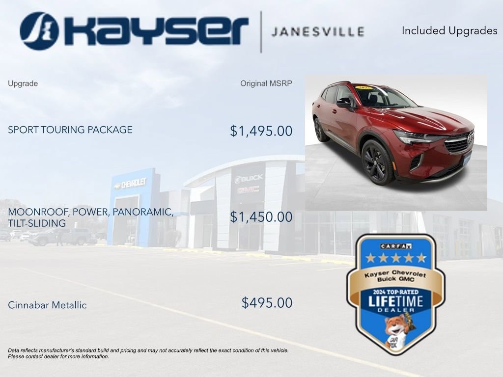 Researched 6 different competing compact luxury SUVs. Kept coming back to the Buick Envision Avenir. It looks great, descent gas mileage, nice interior, has quiet tuning and rides well. All at a lower price than the German alternatives. Built on a Cadillac XT4 frame and suspension with enhancements. It also received the Cadillac 2.0 L Turbo engine and 9 speed transmission that always puts the engine in the sweet spot of its torque curve. Also uses regular gas. A pleasure to drive. Buick hit a home run with this car.… - 5.0
