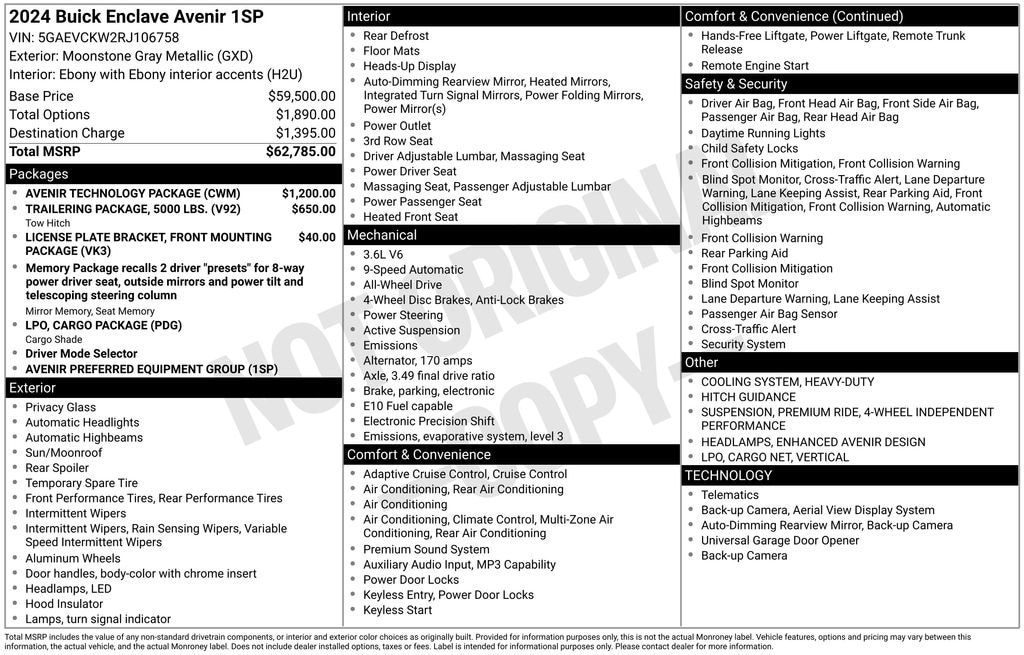 Elevate your driving experience with the Enclave Avenir's premium features, including the Avenir Technology Package, which enhances the suspension, steering, and lighting for a truly refined ride. The Trailering Package, with its heavy-duty cooling system and Hitch Guidance with Hitch View, makes towing a breeze.