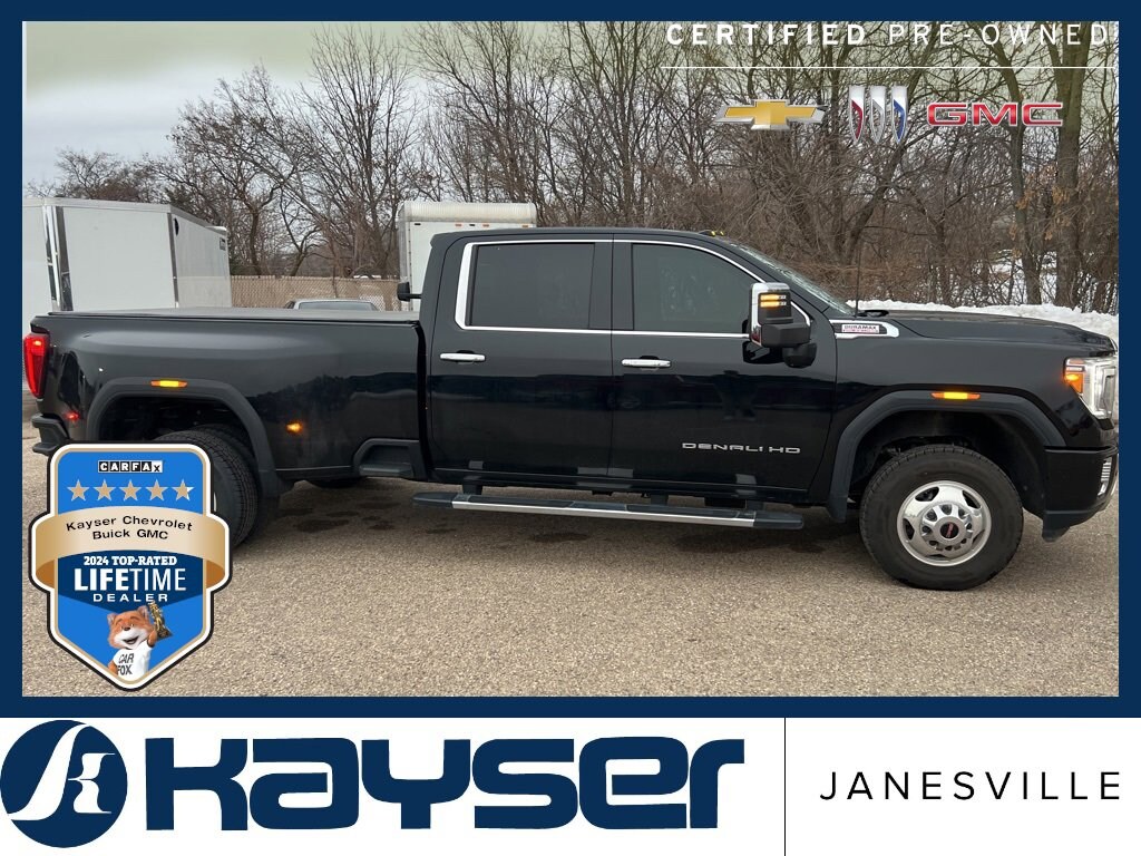 Call or email now! This one won't be here for long! A KAYSER BUYER IS A WISER BUYER! Customers who choose to buy a vehicle from us are making an informed and smart decision due to our transparent pricing, excellent customer service, and commitment to a hassle-free buying experience We do not sell Manufacturer Buybacks/Lemon Law Vehicles or any other vehicle with a bad branded title. For more information call us at 1-608-607-3082 or visit us at www.kayserjanesville.com. 10-Speed Automatic, 4WD, Jet Black Leather, 12-Volt Rear Auxiliary Power Outlet, 120-Volt Bed Mounted Power Outlet, 120-Volt Instrument Panel Power Outlet, 2 USB Ports (First Row), 2 USB Ports Inside Console, 2-Speed Active Transfer Case, 2nd Row Dual USB Charge-Only Ports, 2nd Row Heated Outboard Seats, 4G LTE Wi-Fi Hotspot Capable, 6 Rectangular Chromed Tubular Assist Steps, Auto-Dimming Inside Rearview Mirror w/Camera, Automatic Emergency Braking, Bed View Camera, Chrome Recovery Hooks, Compass Located In Instrument Cluster, Deep-Tinted Glass, Denali Ultimate Package, Driver Alert Package I, Driver Alert Package II, Electric Rear-Window Defogger, Electrical Lock Control Steering Column, Floor-Mounted Center Console, Following Distance Indicator, Forward Collision Alert, GMC Connected Access Capable, Gooseneck/5th Wheel Package, Gooseneck/5th Wheel Prep Package, HD Rear Vision Camera, HD Surround Vision w/2 Trailer View Camera Provisions, Heated Driver & Front Outboard Passenger Seats, Hitch Guidance w/Hitch View, In-Vehicle Trailering System App, Integrated Trailer Brake Controller, IntelliBeam Automatic High Beam On/Off, Keyless Open & Start, Lane Change Alert w/Side Blind Zone Alert, Lane Departure Warning System, LED Cargo Area Lighting, Manual Tilt-Wheel/Telescoping Steering Column, Multicolor 15 Diagonal Head-Up Display, Navigation System, OnStar & GMC Connected Services Capable, Polished Exhaust Tip, Power Door Locks, Power Front Passenger Windows w/Express Up/Down, Power Front Windows w/Driver Express Up/Down, Power Rear Windows w/Express Down, Power Sliding Rear Window w/Defogger, Power Sunroof, Preferred Equipment Group 5SA, ProGrade Trailering System, Rear Cross Traffic Alert, Remote Vehicle Starter System, Safety Alert Seat, Signature Denali Grille w/High Gloss Black Mesh, Spray-On Pickup Bed Liner w/Denali Logo, Steering Wheel Audio Controls, Technology Package, Ultrasonic Front & Rear Park Assist, Unauthorized Entry Theft-Deterrent System, Universal Home Remote, Ventilated Driver & Front Passenger Seats, Wireless Charging.