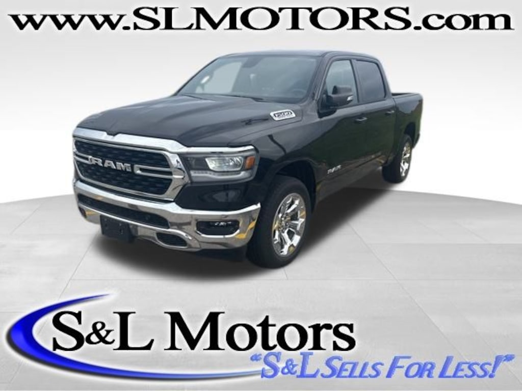 2022 RAM 1500 BIG HORN CREW CAB LOCAL TRADE WITH ONLY 29231 MILES FINISHED IN DIAMOND BLACK CRYSTAL PEARL COAT AND POWERED BY THE 5.7L HEMI V8 ETORQUE ENGINE WITH STOP START TECHNOLOGY THIS TRUCK DELIVERS LEGENDARY RAM STRENGTH TOWING CAPABILITY AND SMOOTH REFINED POWER. THIS BIG HORN IS LOADED WITH THE BIG HORN PACKAGE 27Z AND BIG HORN LEVEL 2 EQUIPMENT GROUP INCLUDING UCONNECT 5 NAV WITH 8.4 INCH TOUCHSCREEN DISPLAY APPLE CARPLAY GOOGLE ANDROID AUTO 4G LTE WI FI HOTSPOT RAM CONNECT HEATED FRONT SEATS HEATED STEERING WHEEL REMOTE START SYSTEM REAR POWER SLIDING WINDOW POWER ADJUSTABLE PEDALS 8 WAY POWER DRIVER SEAT WITH 2 WAY POWER LUMBAR SECOND ROW IN FLOOR STORAGE BINS AND STEERING WHEEL MOUNTED AUDIO CONTROLS FOR COMFORT AND CONVENIENCE ON EVERY DRIVE