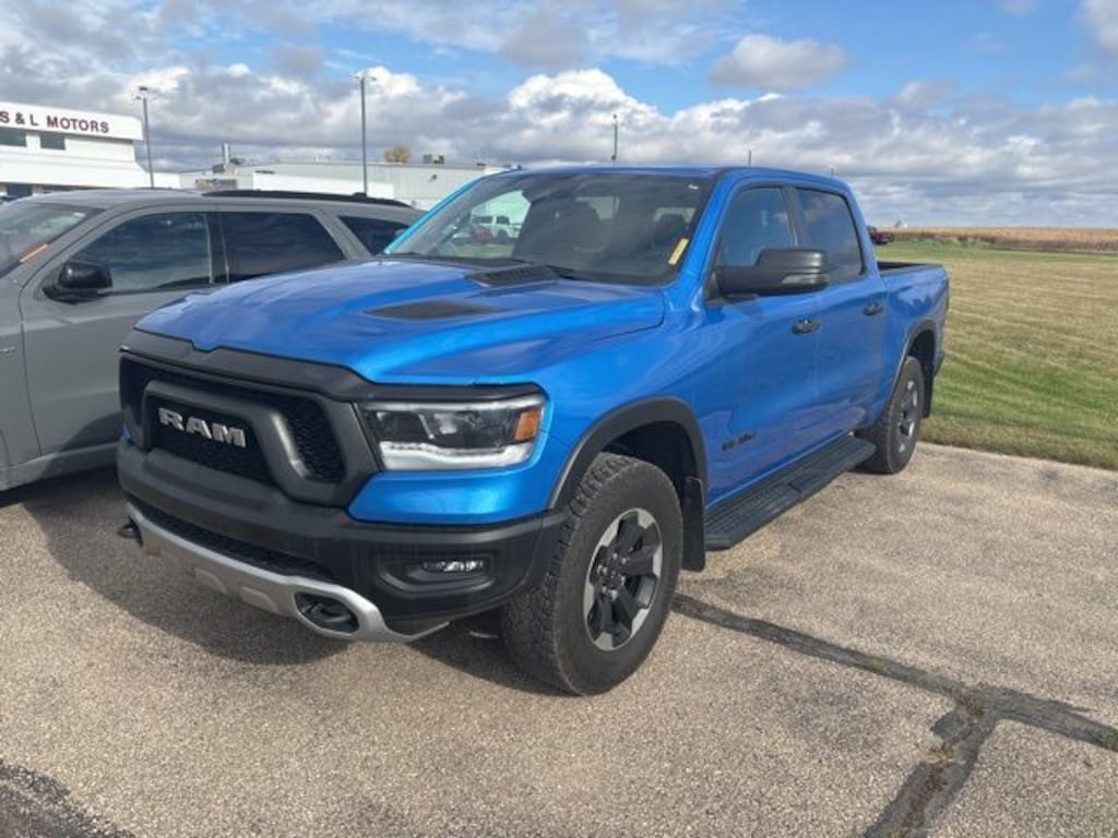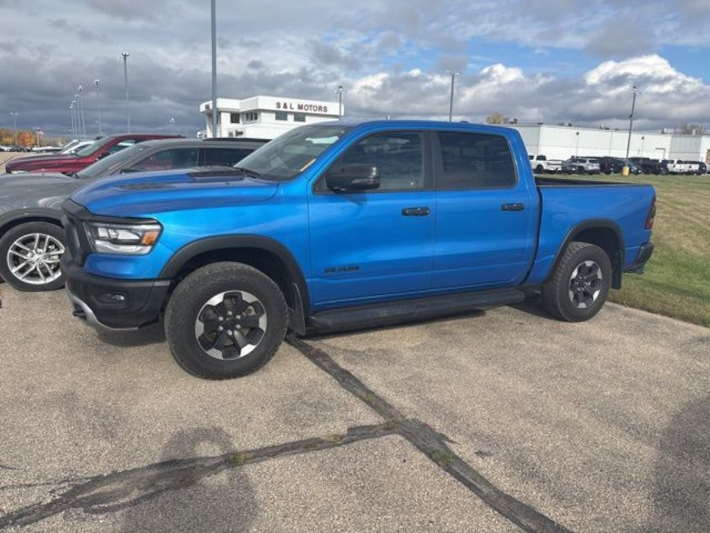 2023 RAM 1500 REBEL CREW CAB 4X4 WITH ONLY 27,335 MILES FINISHED IN STRIKING HYDRO BLUE PEARL OVER BLACK INTERIOR WITH RED ACCENTED SEATING THIS TRUCK COMMANDS ATTENTION WITH ITS AGGRESSIVE STYLE AND LEGENDARY CAPABILITY POWERED BY THE 5.7L HEMI V8 WITH ETORQUE AND MATCHED TO AN 8â"SPEED AUTOMATIC TRANSMISSION IT DELIVERS OUTSTANDING POWER SMOOTH PERFORMANCE AND IMPRESSIVE TOWING CAPABILITY