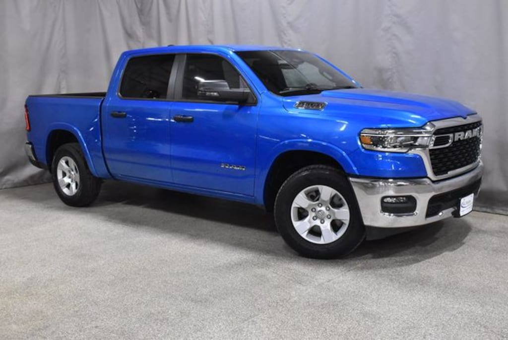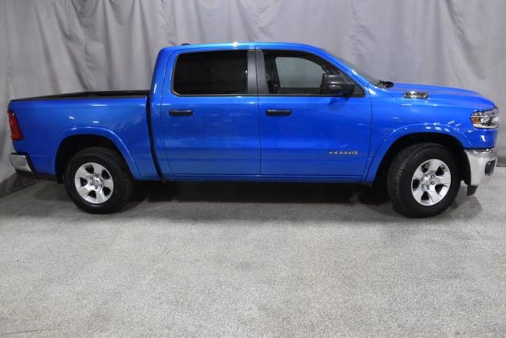 2025 RAM 1500 BIG HORN CREW CAB 4X4 FINISHED IN STRIKING HYDRO BLUE PEARL COAT EXTERIOR OVER DELUXE BLACK CLOTH BUCKET SEATS THIS TRUCK COMMANDS ATTENTION AND DELIVERS A PREMIUM DRIVING EXPERIENCE POWERED BY THE IMPRESSIVE 3.0L I6 HURRICANE SO TWIN TURBO ENGINE WITH STOP START TECHNOLOGY PAIRED WITH AN 8 SPEED AUTOMATIC TRANSMISSION FOR OUTSTANDING POWER AND EFFICIENCY EQUIPPED WITH THE BIG HORN LEVEL 2 EQUIPMENT GROUP FEATURING HEATED FRONT SEATS HEATED STEERING WHEEL 8 WAY POWER DRIVER SEAT WITH POWER LUMBAR DUAL ZONE AUTOMATIC CLIMATE CONTROL UCONNECT 5 NAV WITH MASSIVE 12 INCH TOUCHSCREEN DISPLAY APPLE CARPLAY AND ANDROID AUTO INTEGRATED VOICE COMMAND POWER ADJUSTABLE PEDALS POWER HEATED FOLDING MIRRORS REAR POWER SLIDING WINDOW AUTOMATIC DIMMING REARVIEW MIRROR AND 9 SPEAKER PREMIUM ALPINE SOUND SYSTEM WITH SUBWOOFER ADDITIONAL FEATURES INCLUDE WIRELESS CHARGING PAD SECOND ROW IN FLOOR STORAGE BINS 400 WATT INVERTER 115 VOLT REAR POWER OUTLET AND POWER TAILGATE RELEASE EXTERIOR DETAILS INCLUDE BRIGHT CHROME ACCENTS 18 INCH ALUMINUM WHEELS AND ADVANCED LED LIGHTING THIS BIG HORN ALSO FEATURES THE CUSTOMER PREFERRED PACKAGE 21Z BRINGING ADDED FUNCTIONALITY AND STYLE ALONG WITH MULTIPLE HEAVY DUTY BATTERIES 230 AMP ALTERNATOR SECONDARY ACTIVE GRILLE SHUTTERS AND 3.55 REAR AXLE RATIO THIS TRUCK IS BUILT FOR PERFORMANCE COMFORT AND CONNECTIVITY WITH MODERN TECHNOLOGY AND TIMELESS RAM CAPABILITY WITH ONLY 48,585 MILES THIS HYDRO BLUE BIG HORN CREW CAB IS A STANDOUT CHOICE READY FOR WORK WEEKENDS AND EVERYTHING IN BETWEEN!!!!