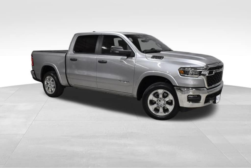 LOCAL ONE OWNER!! S&L MOTORS IS EXCITED TO PRESENT THIS BILLET SILVER METALLIC 2025 RAM 1500 BIG HORN CREW CAB 4X4 WITH SUPER LOW MILES, BIG HORN LEVEL 2 EQUIPMENT GROUP, HEATED PREMIUM BUCKET SEATS, HEATED LEATHER WRAPPED STEERING WHEEL, POWER 8-WAY DRIVER SEAT, POWER ADJUSTABLE PEDALS, 12" TOUCHSCREEN NAVIGATION INFOTAINMENT CENTER, ALPINE 9-SPEAKER PREMIUM AUDIO SYSTEM WITH SUBWOOFER, APPLE CARPLAY/GOOGLE ANDROID AUTO, SIRIUSXM SATELLITE RADIO, WIRELESS CAHRGING PAD, BACKUP CAMERA, PARKSENSE FRONT AND REAR PARK ASSIST, BLIND SPOT MONITORING, POWER SLIDING REAR WINDOW, REMOTE START SYSTEM, 20" CHROME ALLOY WHEELS, CLEAN CARFAX VEHICLE HISTORY REPORT AND THE REMAINDER OF THE RAM FACTORY WARRANTY!!